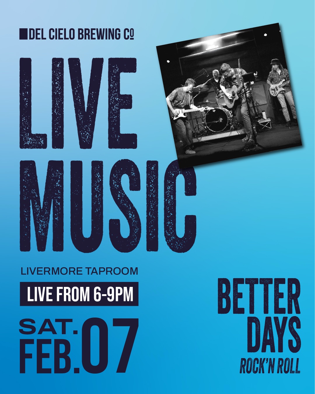 Shows Next show is Better Days Full Band at Del Cielo Brewing Co. in Livermore, Sat., 2/7, 6:00-9:00pm. — Show Listings on Facebook Share this: Share on X (Opens in new window) X Share on Facebook (Opens in new window) Facebook Like Loading...